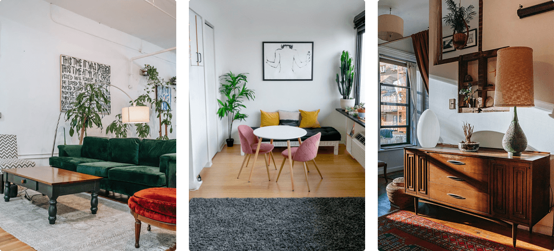 Eklektinen trendi käyttää ainutlaatuista estetiikkaa. Se perustuu eri tyylisiin huonekaluihin, kuvioihin joiden ei pitäisi sopia yhteen, erityisesti odottamattomaan väripalettiin. Lisäämällä huomiota herättäviä kalusteista sekä upeita viimeistelyitä saavutat yllättävän aistien harmonian.