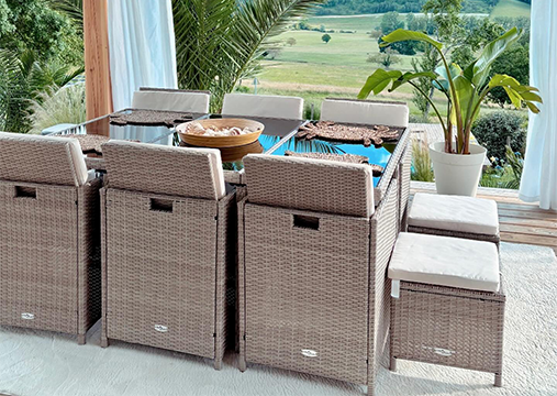 Jotta saat takapihasi näyttämään lomakohteelta, aloita monipuolisilla ulkokalustesarjoilla—upeita täydellisen asetelman luomiseen. Paistata päivää aurinkotuoleillasi ja lisää myös plyysityynyjä lisämukavuuden takaamiseksi!