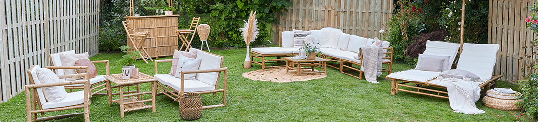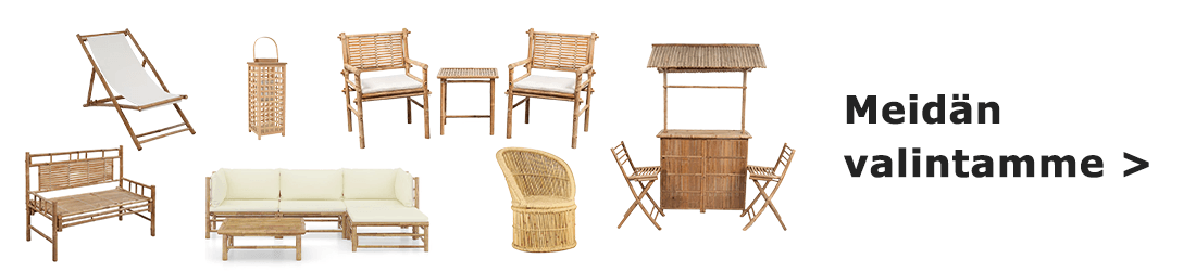 Jos haluat ulkoalueesi näyttävän ja tuntuvan rentouttavalta paratiisilta, niin bambu puutarhakalusteet ovat täydellinen vaihtoehto. Meillä on kalusteratkaisut jokaiseen tilaan, mukavasta parvekkeesta suureen puutarhaan. Sisusta tyylikkäästi parilla kokoontaittuvalla bambu ohjaajantuolilla – ne ovat trendikkäitä ja ainutlaatuisia. Voit myös valita bambu ruokaryhmämme ihaniin ulkoruokailuihin.