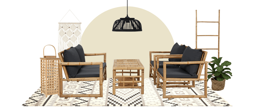 Rentoutumiseen me suosittelemme terassituoleja, joissa on tukeva bamburakenne ja värikäs kangas mukavuutesi takaamiseksi. Lisää bambu sohvapöytä tai bambu jakkarat perinteisiksi istuimiksi. Suuressa puutarhassa voit valita bambu bistrosarjan trooppisella baarilla. Tällä tavalla suunnittelet houkuttelevan ulkotilan, joka sopii täydellisesti sosiaalisiin tapahtumiin.